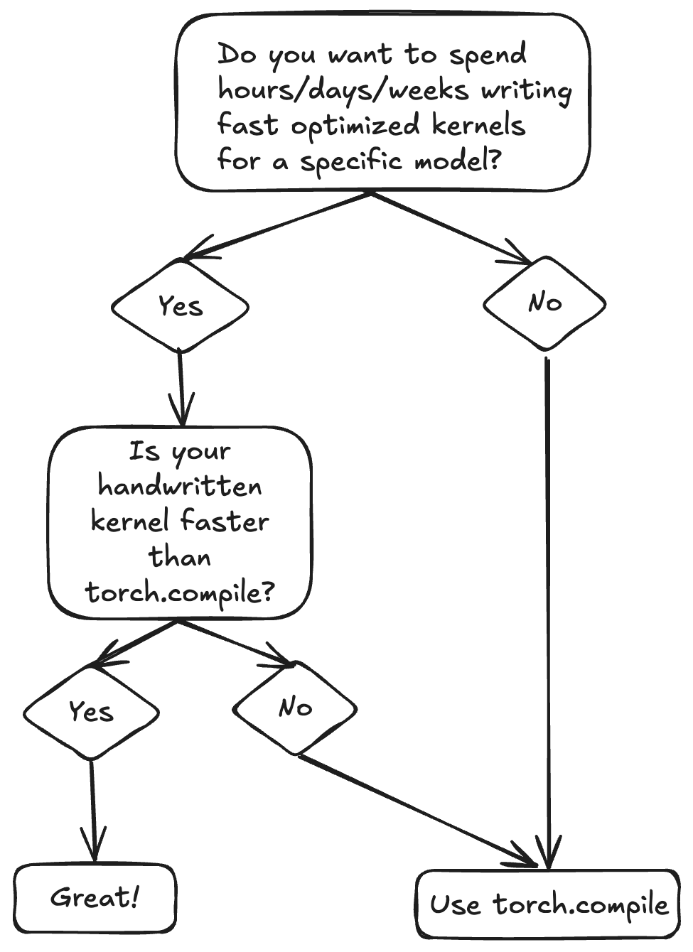 Figure 2: torch.compile gives you fast baseline performance to save YOU development time from tuning model performance.